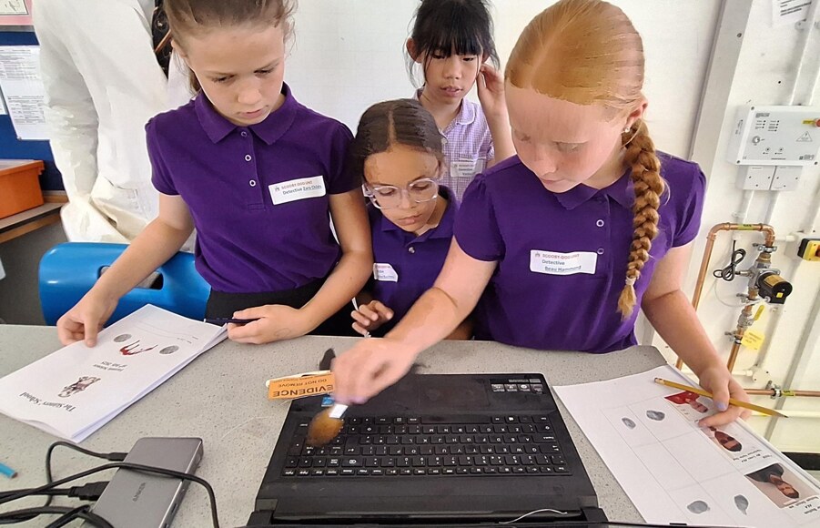 A group of lucky Year 5 children were selected to spend a day at the Skinners' Academy where they were taken through an intriguing forensic workshop. Divided into groups and working with pupils from other schools, they worked hard using the latest scientific techniques to study the clues left behind at a fictional crime scene.